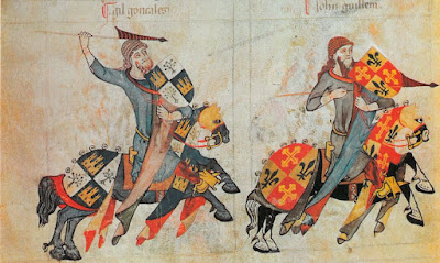 En este contexto nace, alrededor del año 1338, bajo el reinado de Alfonso XI, la Cofradía de los Caballeros de Santiago de Burgos, en la que se integra la oligarquía de la Caput Castellae, cuyo fundamento era la riqueza, su motivación los ideales caballerescos y su aspiración llegar a formar parte algún día de la clase nobiliaria. Por aquella época, casi mediado el siglo XIV, un caballero, aparte de las armas para luchar, debía portar también armas heráldicas pintadas sobre su escudo, así que estos ricoshombres castellanos se lanzaron a la búsqueda de los emblemas más llamativos y evocadores, que lucirían orgullosos en los alardes y los juegos caballerescos del lanzamiento de bohordos, las justas y los torneos.